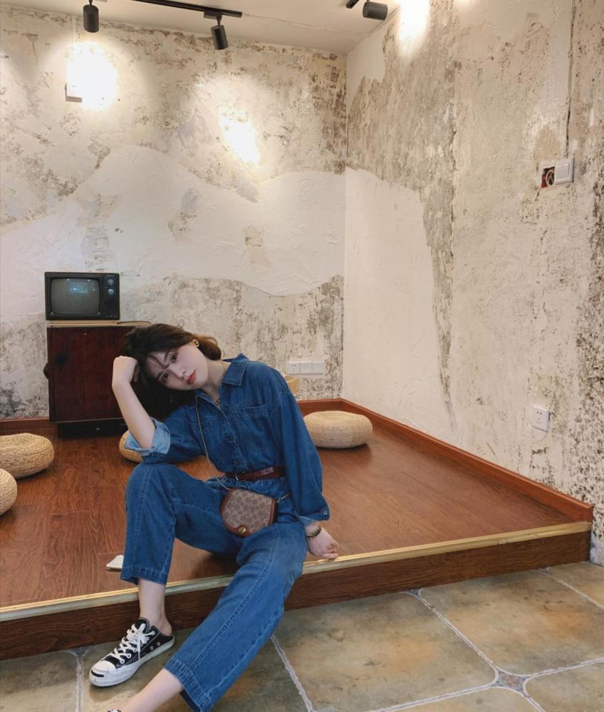 像这条连体牛仔裤,整体剪裁流畅,凭借裤腰营造出完美的比例,也可以通过收紧的方式束出纤细紧绷的腰身。这样塑造出来的线条也会变得特别长,特别容易表现出高挑和单薄。